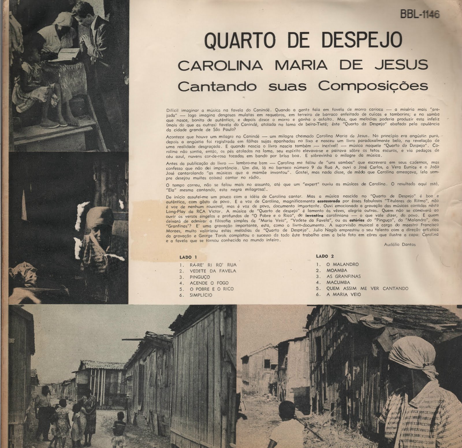 "Eu classifico São Paulo assim: o Palácio é a sala de visita. A Prefeitura é a sala de jantar e a cidade é o jardim, a favela é o quintal onde jogam o lixo".(Carolina Maria de Jesus)